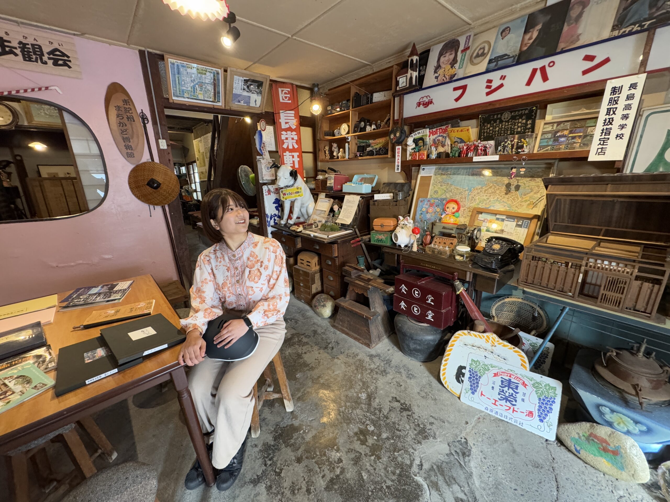 古民家を改装した”昭和”の博物館。小道具やレトロな看板が所狭しと並べられています。無料で見学可能です。終わったら隣のまるみ食品のコロッケもどうぞ。